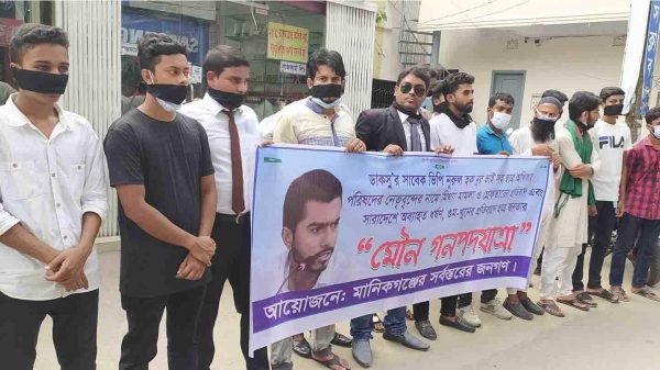 মানিকগঞ্জে ভিপি নুরের বিরুদ্ধে মিথ্যা মামলার প্রতিবাদে মানববন্ধন