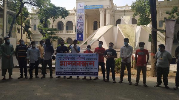 মানববন্ধনে অংশ নেওয়া শিক্ষার্থীরা বলেন, দেশের সিনেমা হল থেকে শুরু করে সব খুলে দেয়া হয়েছে শুধুমাত্র শিক্ষাপ্রতিষ্ঠান ছাড়া। একটা পরীক্ষার জন্য আমরা আটকে আছি। আমরা বিশ্ববিদ্যালয় খুলতে বলছি না, ক্যাম্পাস বন্ধ রেখেই আমাদের পরীক্ষাটা নেওয়া হোক।আমাদের ভবিষ্যত জীবন অনিশ্চয়তার মধ্যে আছে। চাকরির বাজারে আমরা পিছিয়ে পড়ছি, আমাদের ভবিষ্যত নিয়ে অনিশ্চয়তা বাড়ছে। বিশ্ববিদ্যালয় বন্ধ রেখে স্বাস্থ্যবিধি মেনে অন্তত আমাদের পরীক্ষাটা নেয়া হোক।
