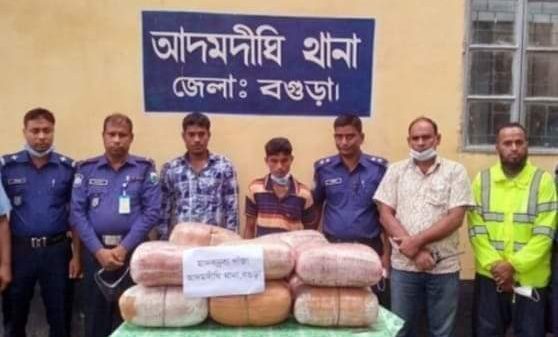 বগুড়ার আদমদীঘিতে ৬০ কেজি গাঁজা উদ্ধারসহ তিন মাদককারবারীকে আটক ও মাদক বহনকারী ইসিজু টুপার ঢাকা মেট্রো ঘ ১১-৩৩৫৬ নং পাজরো গাড়ী জব্দ করেন পুলিশ। এঘটনায় থানায় মামলা দায়ের হয়ছে। পুলিশ জানায়, ঢাকা নারায়নগঞ্জ থেকে নওগাঁগামী একটি পাজরো গাড়ীতে মাদক বহন করছে এমন গোপন সংবাদের ভিত্তিতে আদমদীঘি সার্কেলের সিনিয়র সহকারী পুলিশ সুপার কে,এইচ, এম এরশাদ ওসি জালাল উদ্দীনের নেত্বতে পুলিশ ফোর্স নিয়ে অভিযান চালিয়ে বগুড়া-নওগাঁ মহাসড়কে আদমদীঘি বাসস্ট্যান্ডে এলাকায় চেকপোষ্ট বসিয়ে একটি ঢাকাগামী পাজারো গাড়ি জব্দ করে সে গাড়ি থেকে ৬০ কেজি গাঁজা উদ্ধার (-ঢাকা মেট্রো-১১-৩৩৫৬) নং গাড়ী জব্দ করেন।
