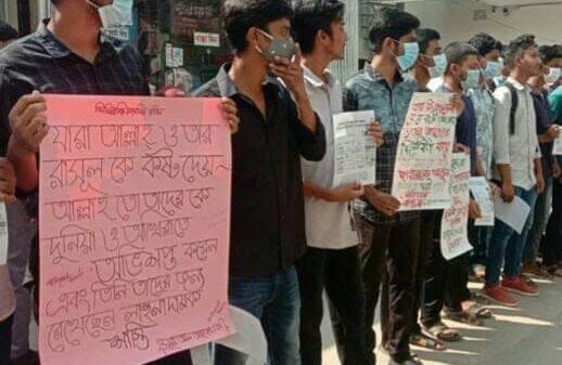 মানিকগঞ্জে মহানবীকে নিয়ে ব্যঙ্গচিত্রের প্রতিবাদে মানববন্ধন