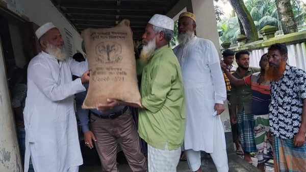 অবরোধের শেষ মুহূর্তে কুয়াকাটা জেলেদের মাঝে চাল বিতরণ করা হয়।