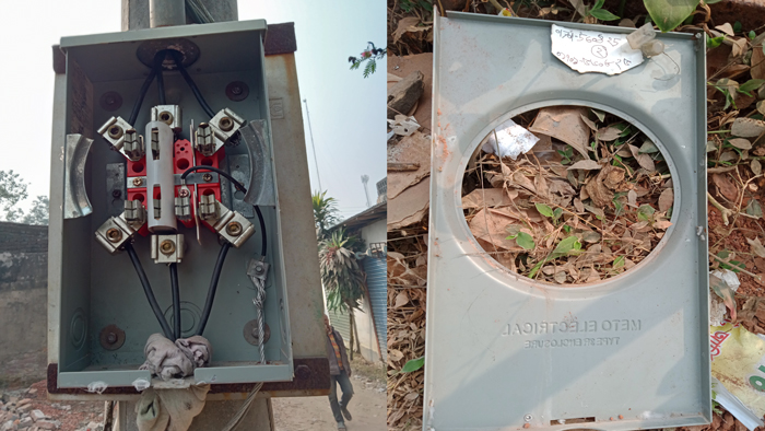 স্থানীয় সুত্রে জানা যায়, রুহলের ওয়ার্কসপ, ঠান্ডু হাজি, রফিকুল ইসলাম, অব্দুল মান্নানের করাত মিল, শহীদ চৌধুরীর ইট ভাটা সহ মোট ৯টি শিল্প কারখানা থেকে গত রবিবার গভীর রাতে বৈদ্যুতিক শিল্প মিটারগুলি চুরি করে নিয়ে যায়। একটি মিটারের পোলের সাথে একটি চিরকুটে ০১৬১৩-৩৯৮৫২০ মোবাইল ফোন নং রেখে যায়। ওই মোবাইলে যোগাযোগ করা হলে প্রতিটি মিটার বাবদ ৫ হাজার হাজার টাকা দাবী মিটালে মিটারগুলো একটি নির্দিষ্ট স্থানে রাখা হবে বলে জানায়।
