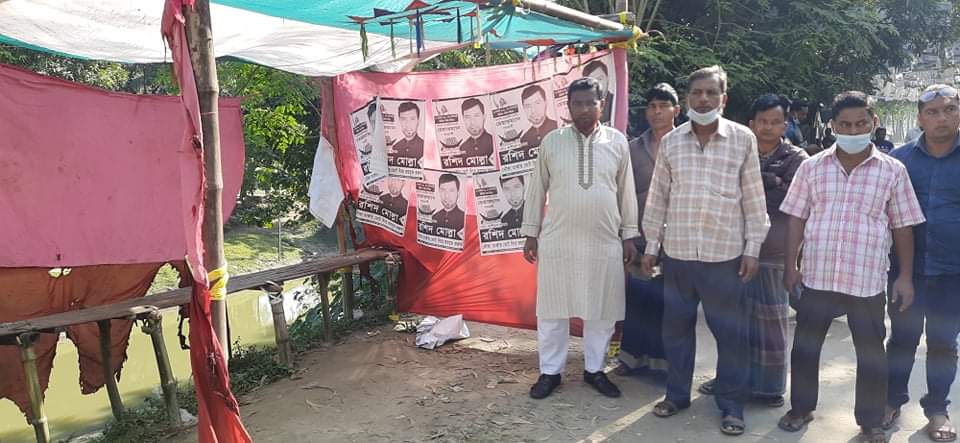 সিরাজগঞ্জ সদর উপ‌জেলার আসন্ন ৫ নং খোকশাবাড়ী ইউ‌নিয়‌ন প‌রিষ‌দ নির্বাচ‌নে বাংলা‌দেশ আওয়ামী লীগের ম‌নোনীত পদপ্রার্থী মোঃ র‌শিদ মোল্লার নির্বাচনী অফিসের টাঙ্গানো নৌকার পোষ্টার জাতীর জনক বঙ্গবন্ধু শেখ ম‌জিবর রহমান ও জন‌নেত্রী শেখ হা‌সিনার ছ‌বি, ব‌্যানার রাতের আঁধারে দলবদ্ধভাবে অগ্নিসংযোগ করে‌ছে দুর্বৃত্তরা। এ সময় অনেক ভোর রা‌তে পথচারীরদের নজরেও পড়ে ।