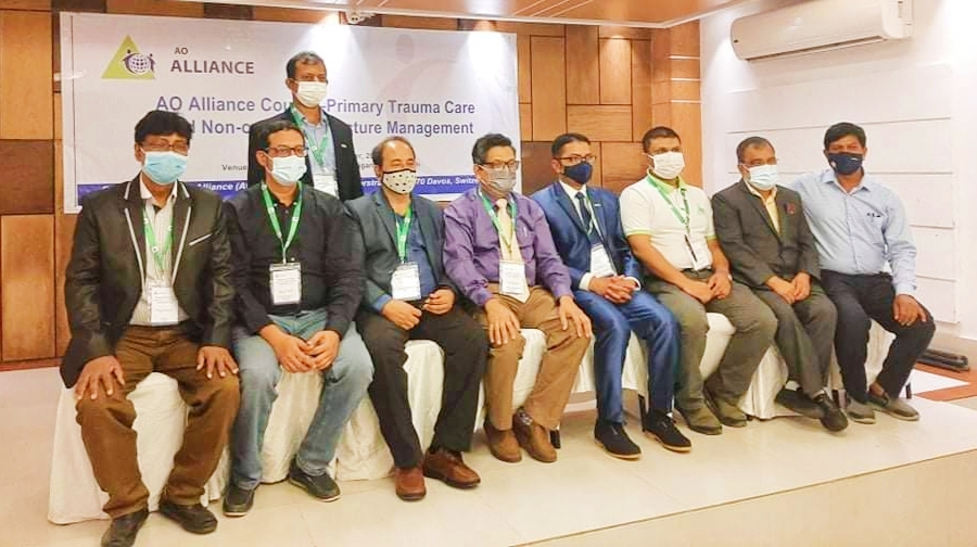 এ ও অ্যালায়েন্সের আয়োজনে ২ দিন ব্যাপী সিরাজগঞ্জ পৌর কনভেনশন হল রুমে ১৪, ১৫ ই নভেম্বর রবিবার ও সোমবার সকাল ৮ টা থেকে দিনব্যাপী এ ও অ্যালায়েন্স কোর্স-প্রাথমিক ট্রমা কেয়ার এবং নন-অপারেটিভ ফ্র্যাকচার ম্যানেজমেন্ট প্রশিক্ষন অনুষ্ঠিত হয়েছে। প্রশিক্ষনে সিরাজগঞ্জ শহীদ এম মনসুর আলী মেডিকেল কলেজের ২৫ জন ইন্টার্ন চিকিৎসক অংশগ্রহন করেন। প্রশিক্ষনে প্রশিক্ষক হিসেবে উপস্থিত ছিলেন, জাতীয় কোর্স চেয়ার ডাঃ মোহাম্মদ খোরশেদ আলম, জাতীয় কোর্স কো-চেয়ারের মোহাম্মদ রাজিব মাহমুদ, এ ছাড়াও উপস্থিত ছিলেন, কোর্স কোঅর্ডিনেটর এও এ্যালায়েন্স এশিয়া স্টিয়ারিং কমিটির প্রতিনিধি ডাঃ ফজলুল হক কাশেম, ন্যাশনাল ফ্যাকাল্টি ডাঃ সান্তনু ধর ইমন, ন্যাশনাল ফ্যাকাল্টি ডাঃ এ. এস. এম, আব্দুল্লাহ্ সিরাজগঞ্জ শহীদ এম মনসুর আলী মেডিকেল কলেজের সহকারি অধ্যাপক জুলফিকার আলী, ডাঃ সনদ কুমার কুন্ডু, অর্গানাইজিং চেয়ারম্যান ডাঃ ওয়ালিউল ইসলাম তালুকদার, বঙ্গমাতা শেখ ফজিলাতুন্নেছা মুজিব জেনারেল হাসপাতালের ডাঃ দেলওয়ার হোসেন, মাহমুদুল হাসান প্রমুখ। প্রশিক্ষনে জাতীয় কোর্স চেয়ার ডাঃ মোহাম্মদ খোরশেদ আলম বলেন সিরাজগঞ্জে এই প্রথম ফ্র্যাকচার ম্যানেজমেন্ট প্রশিক্ষন অনুষ্ঠিত হচ্ছে। প্রশিক্ষন থেকে শিখে রোগীদের ট্রিটমেন্ট করলে নতুন জ্ঞান এবং দক্ষতা সমৃদ্ধ হবে। আহত রোগীর যতেœর উন্নতি হবে।