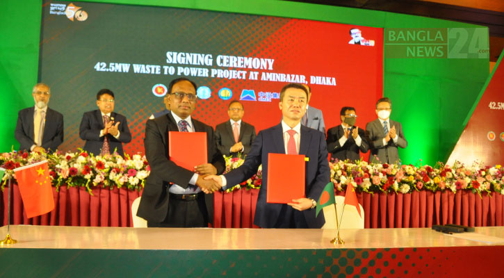 বর্জ্য থেকে বিদ্যুৎ উৎপাদনে বাংলাদেশ ও চীনের মধ্যে একটি চুক্তি স্বাক্ষর হয়েছে। এ চুক্তির আওতায় ঢাকার আমিন বাজারে ৪২ দশমিক ৫ মেগাওয়াট বিদ্যুৎ উৎপাদনের জন্য কারখানা তৈরি করা হবে। বুধবার (১ ডিসেম্বর) রাজধানীর হোটেল সোনারগাঁওয়ে এ চুক্তি স্বাক্ষর অনুষ্ঠান অনুষ্ঠিত হয়। ঢাকা উত্তর সিটি করপোরেশন, বিদ্যুৎ উন্নয়ন বোর্ড এবং পাওয়ার গ্রিড কোম্পানি অব বাংলাদেশ লিমিটেড চীনের প্রতিষ্ঠান সিএমইসিয়ের সঙ্গে এ চুক্তি স্বাক্ষর করেন।