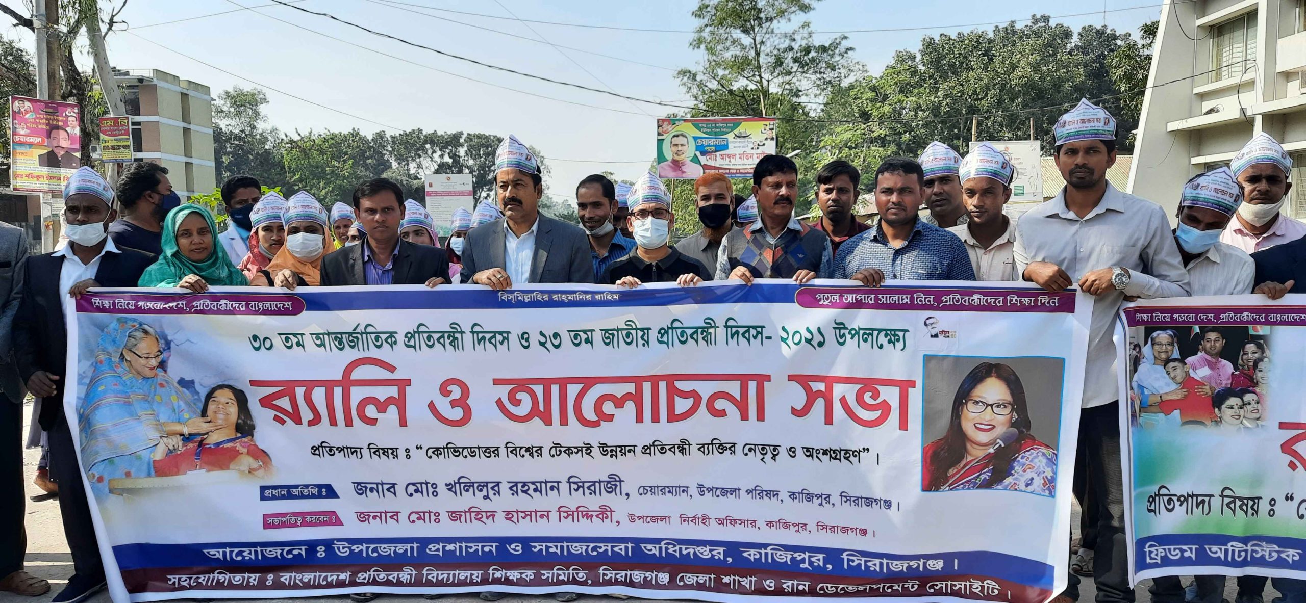 শুক্রবার কাজিপুর উপজেলা প্রশাসন ও সমাজসেবা কার্যালয়ে আয়োজিত অনুষ্ঠানে এ দিবস উপলক্ষে র্যালী ও আলোচনাসভা অনুষ্ঠিত হয়। উক্ত র্যালীতে অংশ নেয় উপজেলা সদর প্রতিবন্ধী বিদ্যালয়,এ ওয়ান শিশু স্বর্গ অটিস্টিক স্কুল, উদগাড়ি উল্লাপাড়া আর্দশ প্রতিবন্ধী বিদ্যালয়, ফ্রিডম অটিস্টিক এন্ড ডিজেবল স্কুল, মোহাম্মদ নাসিম অটিস্টিক ও প্রতিবন্ধী বিদ্যালয় ও আমেনা মনসুর অটিস্টিক প্রতিবন্ধী বিদ্যালয়ের শিক্ষক ও শিক্ষার্থীরা। পরে উপজেলা পরিষদ অডিটোরিয়ামে উপজেলা নির্বাহী অফিসার জাহিদ হাসান সিদ্দিকী এর সভাপতিত্বে আলোচনা সভা অনুষ্ঠিত হয়। এতে প্রধান অতিথি হিসেবে বক্তব্য রাখেন উপজেলা চেয়ারম্যান খলিলুর রহমান সিরাজী। অনুষ্ঠানটি পরিচালনা করেন এ ওয়ান শিশু স্বর্গ অটিস্টিক স্কুলের প্রতিষ্ঠাতা পরিচালক মোঃ আমিনুল ইসলাম।