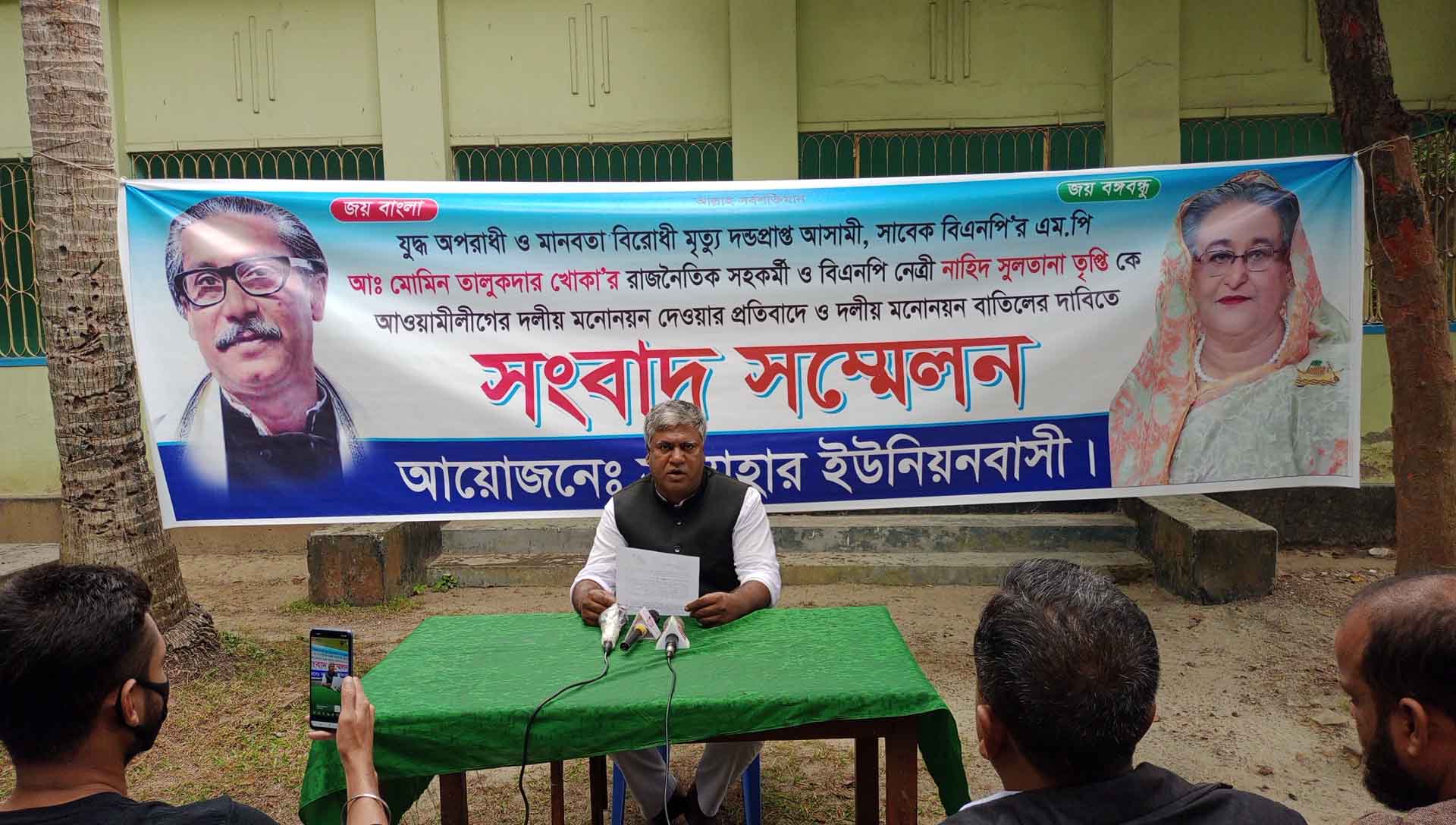 বগুড়ার আদমদীঘি উপজেলার সান্তাহার ইউনিয়ন পরিষদ নির্বাচনে আওয়ামলীলীগ দলীয় প্রার্থী নাহিদ সুলতানা তৃপ্তির বিরুদ্ধে যুদ্ধাপরাধী ও মানবতা বিরোধী অপরাধে দন্ডপ্রাপ্ত ফাঁসির আসামী সাবেক সংসদ আব্দুল মোমিন তালুকদার খোকার সাথে রাজনৈতিক কর্মকান্ডে জড়িত থাকা ও আওয়ামীলীগের দলীয় মনোনয়ন দেওয়ার প্রতিবাদে ও দলীয় মনোনয়ন বাতিলের দাবিতে সান্তাহারে এক সংবাদ সম্মেলন অনুষ্ঠিত হয়েছে।