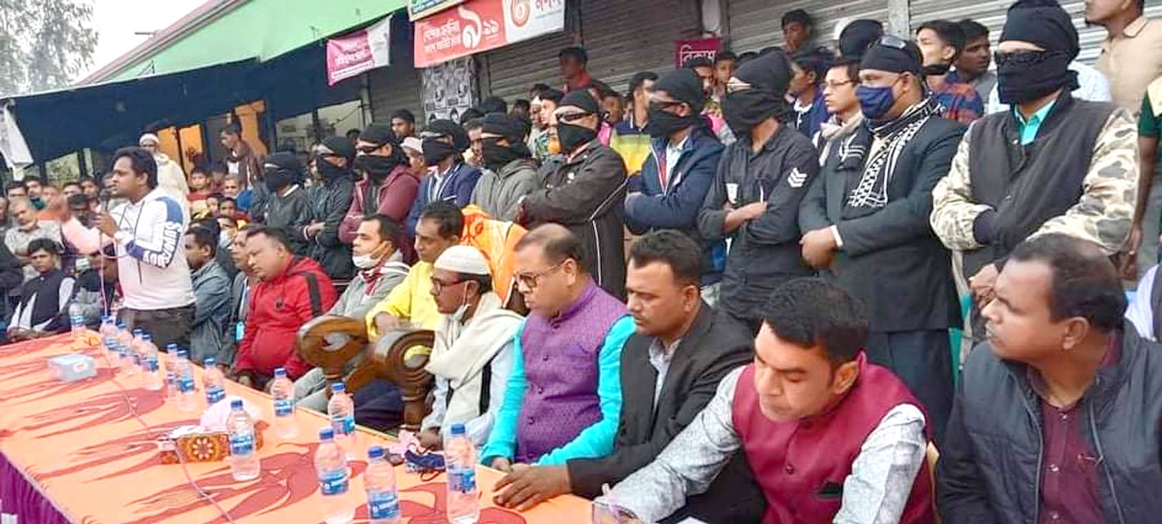 শাহজাদপুরে মুখোশধারিদের পাহারায় আওয়ামীলীগ মনোনীত প্রার্থীর নির্বাচনী সভা: আতঙ্কে জনসাধারণ