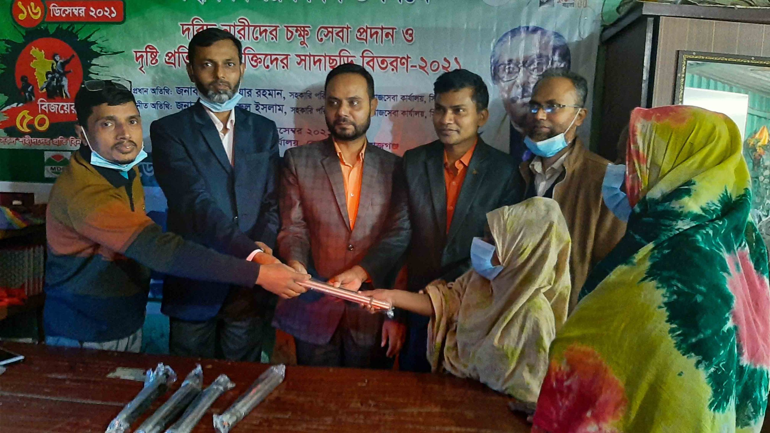 যুগের কথা প্রতিবেক: জতির জনক বঙ্গবন্ধুর জন্মশতবার্ষিকী ও স্বাধিনতার সুবর্ণজয়ন্তি মহান বিজয় দিবস ২০২১ পালন উপলক্ষে বেসরকারী স্বেচ্ছাসেবী সংগঠন মডেল ডেভেলপমেন্ট প্রোগ্রাম (এমডিপি) এর আয়োজনে দরিদ্র নারীদের বিনামূল্যে চক্ষু সেবা, চশমা বিতরণ ও দৃষ্টি প্রতিবন্ধীব্যক্তিদের মাঝে বিনামূল্যে সাদাছড়ি বিতরণ করা হয়েছে।