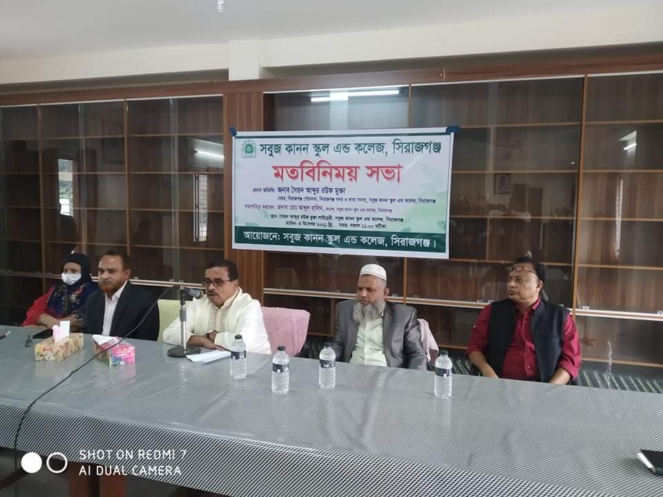যুগের কথা প্রতিবেদক : সিরাজগঞ্জ শহরের প্রানকেন্দ্রে অবস্থিত সবুজ কানন স্কুল এন্ড কলেজে ১৬ ডিসেম্বর মহান বিজয় দিবস ২০২১ উদযাপন উপলক্ষে বীর মুক্তিযোদ্ধাদের স্বকণ্ঠে মুক্তিযুদ্ধের স্মৃতি চারণ অনুষ্ঠিত হয়েছে। সোমবার বেলা ১১টায় প্রতিষ্ঠানের নিজস্ব হলরুমে অধ্যক্ষ মোঃ আব্দুল হালিম এর সভাপতিত্বে অনুষ্ঠিত মুক্তিযুদ্ধের স্মৃতি চারণ অনুষ্ঠানে প্রধান অতিথি হিসেবে উপস্থিত থেকে বক্তব্য রাখেন বীর মুক্তিযোদ্ধা মোঃ সোহরাব আলী সরকার। অনুষ্ঠানের শুরুতেই বীর মুক্তিযোদ্ধার প্রতি সম্মান প্রদর্শন করে এক মিনিট নীরবতা পালন করা হয় ও সেলুট দেয়া হয়।