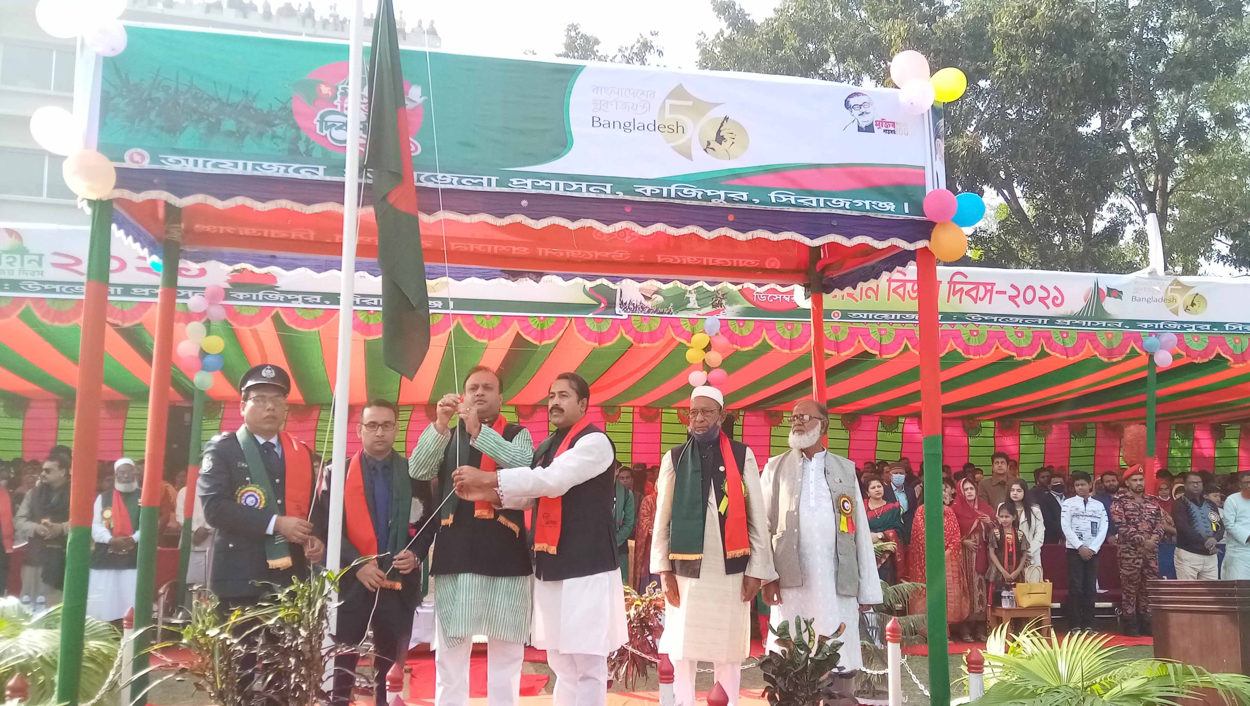 কাজিপুরে নানা আয়োজনের মধ্য দিয়ে মহান বিজয় দিবস ও বিজয়ের সুবর্ণজয়ন্তী উদযাপিত হয়েছে। উপজেলা প্রশাসনের আয়োজনে বৃহস্পতিবার সূর্যোদয়ের সাথে সাথে ৫০ বার তোপধ্বনি ও জাতীয় পতাকা উত্তোলনের মাধ্যমে দিবসটির শুভ সূচনা হয়।