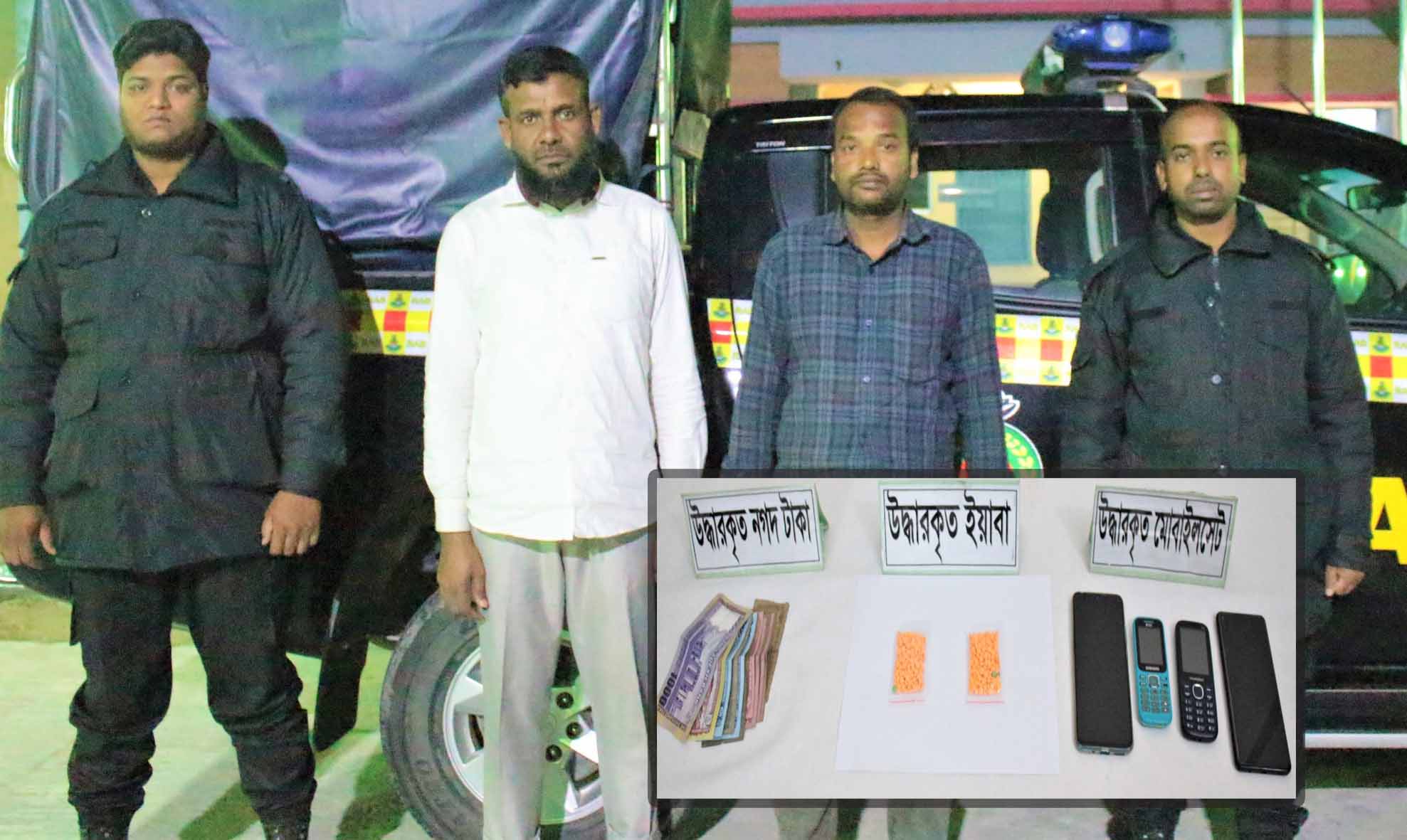 এর ধারাবাহিকতায় ১৫/১২/২০২১ তারিখ বিকাল ৩.০০ ঘটিকার গোপন সাংবাদের ভিত্তিতে র্যাব-১২ এর স্পেশাল কোম্পানীর ভারপ্রাপ্ত কোম্পানী কমান্ডার সহকারী পুলিশ সুপার মিঃ জন রানা এর নেতৃত্বে স্পেশাল কোম্পানীর একটি চৌকষ আভিযানিক দল সিরাজগঞ্জ জেলার শাহজাদপুর থানাধীন বিসিক বাসস্ট্যান্ডস্থ মনি কমপ্লেক্স মার্কেটের সামনে এক মাদক বিরোধী অভিযান চালিয়ে ৩৯৫(তিনশত পঁচানব্বই) পিচ ইয়াবাসহ ০২ জন র্শীষ মাদক ব্যবসায়ীকে গ্রেফতার করেছে। এসময় তাহাদের নিকট থেকে মাদক ক্রয়-বিক্রয় এর কাজে ব্যবহৃত ০৪ টি মোবাইল এবং নগদ ১৭১০/-(এক হাজার সাতশত দশ) টাকা জব্দ করা হয়।