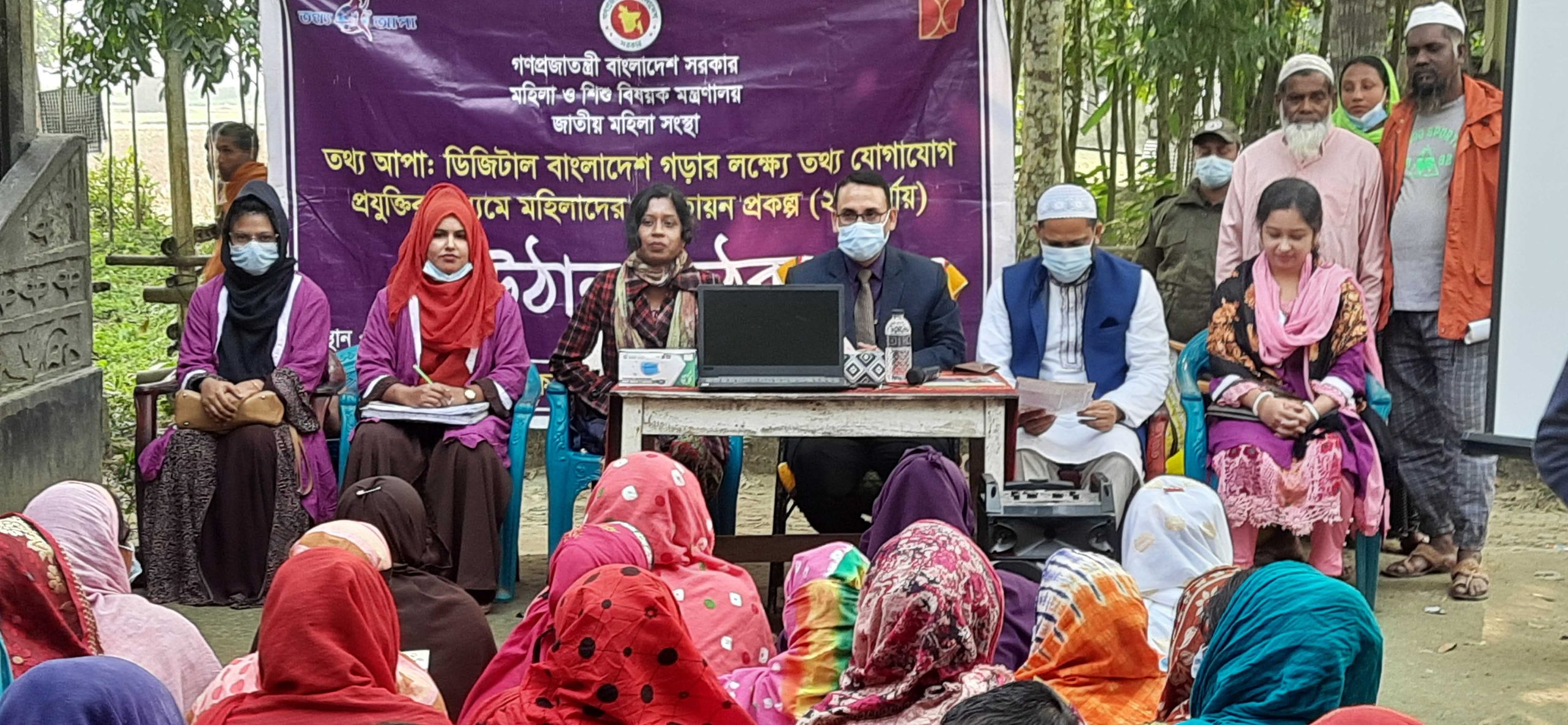 ডিজিটাল বাংলাদেশ গড়ার লক্ষ্যে তথ্য প্রযুক্তির মাধ্যমে মহিলাদের ক্ষমতায়ন প্রকল্পের আওতায় গ্রামীন সুবিধা বঞ্চিত নারীর সমস্যা সমাধানের নিমিত্তে উঠান বৈঠক অনুষ্ঠিত হয়েছে। বুধবার উপজেলার মাইজবাড়ি ইউনিয়নের ছালাভরা গ্রামে উপজেলা তথ্য কেন্দ্রের আয়োজিত অনুষ্ঠানে সভাপতিত্ব করেন উপজেলা নির্বাহী অফিসার জাহিদ হাসান সিদ্দিকী। রিসোর্স পার্সন হিসেবে বক্তব্য রাখেন উপজেলা মহিলা বিষয়ক কর্মকর্তা চিত্রা রানী সাহা। মুল বিষয়টি প্রজেক্টরের মাধ্যমে উপস্থাপন করেন উপজেলা তথ্য সেবা কর্মকর্তা (তথ্য আপা) মৌসুমি বসাক। উক্ত উঠান বৈঠকে আলোচকরা বাল্য বিবাহের কুফল, যৌতুক, নারী নির্যাতন, বর্তমান করোনা পরিস্থিতিতে স্বাস্থ্যসেবা, ই- কমার্স সেবা, লাল সবুজ ডটকম এর মাধ্যমে নিবন্ধন, বিভিন্ন অফিসের সেবা সম্পর্কে তথ্য প্রদান, অনলাইন সেবা, আইনী পরামর্শ ও কৃষি, শিক্ষা, ব্যবসা সংক্রান্ত পরামর্শ প্রদানসহ নানা বিষয় নিয়ে আলোকপাত করেন। উক্ত উঠান বৈঠকে অংশ নেওয়া ৫০ জন নারীদের কে ১০০ টাকা করে সন্মানিও নাস্তা প্রদান করা হয়। এ সময় উপস্থিত ছিলেন উপজেলা পিআইও একেএম শাহা আলম মোল্লা।