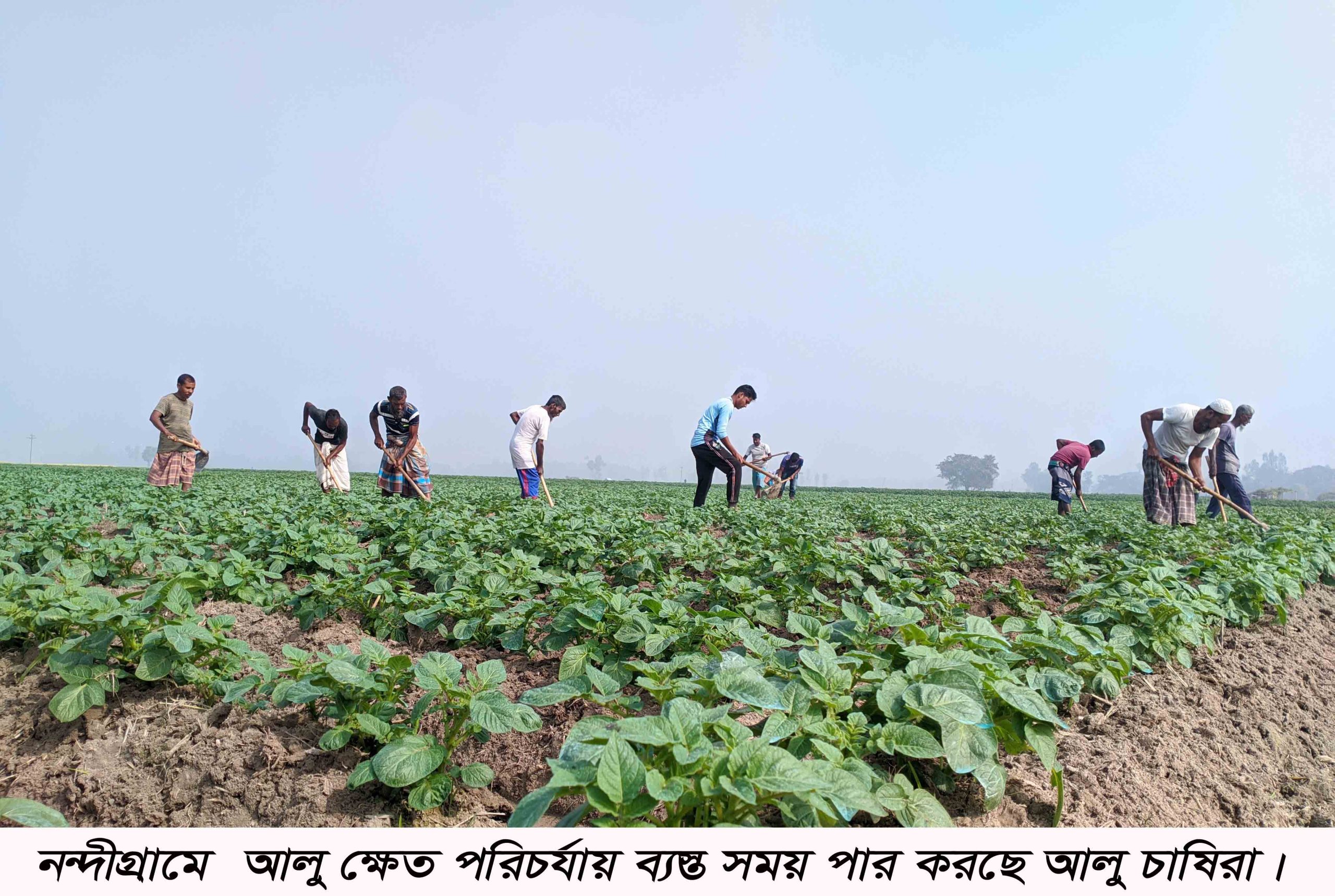 নন্দীগ্রামে ক্ষেত পরিচর্যায় ব্যস্ত সময় পার করছে আলু চাষিরা