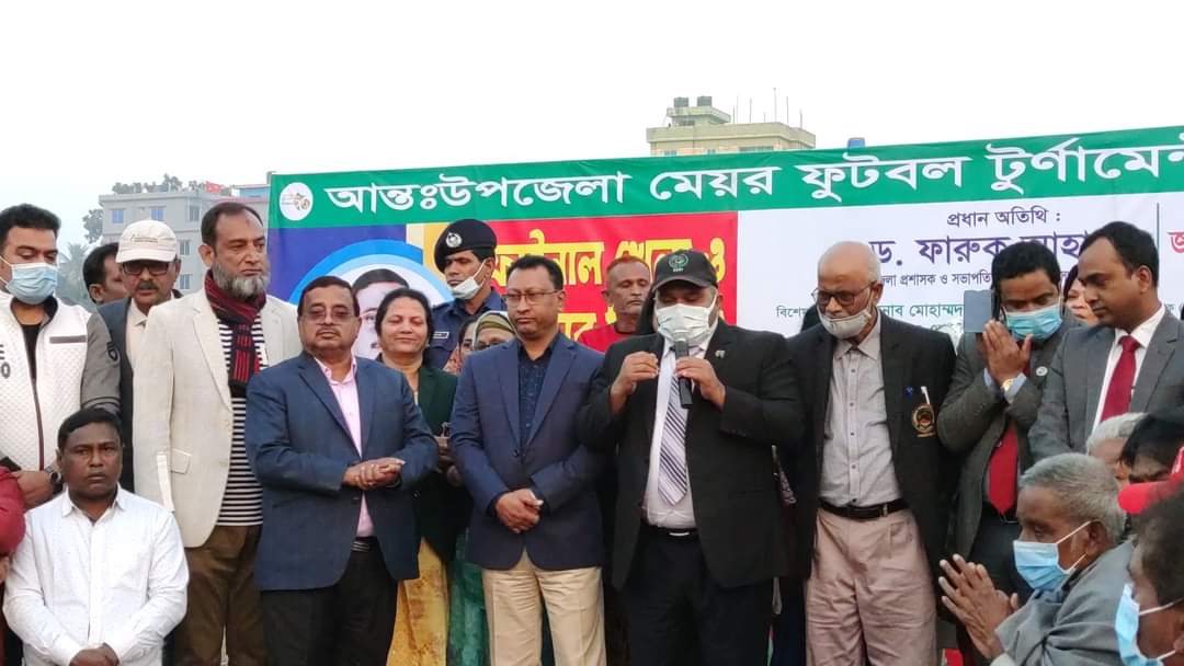 যুগের কথা প্রতিবেদক : সিরাজগঞ্জ আন্ত:উপজেলা মেয়র ফুটবল টুনামেন্ট ২০২১ সিরাজগঞ্জ জেলা ৯টি উপজেলা নিয়ে এ খেলা অনুষ্ঠিত হয়েছে। মঙ্গলবার (০৪ জানুয়ারি ২০২২) বিকেলে শহীদ শামসুদ্দিন স্টেডিয়ামের আন্ত:উপজেলা মেয়র ফুটবল টুর্নামেন্টের ফাইনালে উল্লাপাড়া উপজেলা একাদশ বনাম রায়গঞ্জ উপজেলা একাদশ খেলায় অংশগ্রহণ করে। এ সময়ে খেলায় উপস্থিত থেকে চ্যাম্পিয়ান দলের হাতে ট্রফি তুলেদেন জেলা ক্রীড়া সংস্থার সভাপতি ও জেলা প্রশাসক ড.ফারুক আহাম্মদ, পুলিশ সুপার হাসিবুল আলম বিপিএম, জেলা আওয়ামী লীগের সহ-সভাপতি ও পৌর মেয়র সৈয়দ আব্দুর রউফ মুক্তা, জেলা ক্রীড়া সংস্থার সহ- সভাপতি ও অতিরিক্ত জেলা প্রশাসক (সার্বিক) মোহাম্মদ মনির হোসেন, সিরাজগঞ্জ জেলা আওয়ামীলীগের( ভারপ্রাপ্ত) সভাপতি বীর মুক্তিযোদ্ধা আলহাজ্ব এডভোকেট কে এম হোসেন আলী হাসান, সহ- সভাপতি ও চেম্বার অব কমার্স প্রেসিডেন্ট বীর মুক্তিযোদ্ধা আলহাজ্ব আবু ইউসূফ সূর্য, জেলা আওয়ামী লীগের সাংগঠনিক সম্পাদক সেলিম আহমেদ, জেলা ক্রীড়া সংস্থা সাধারণ সম্পাদক এমদাদুল হক,