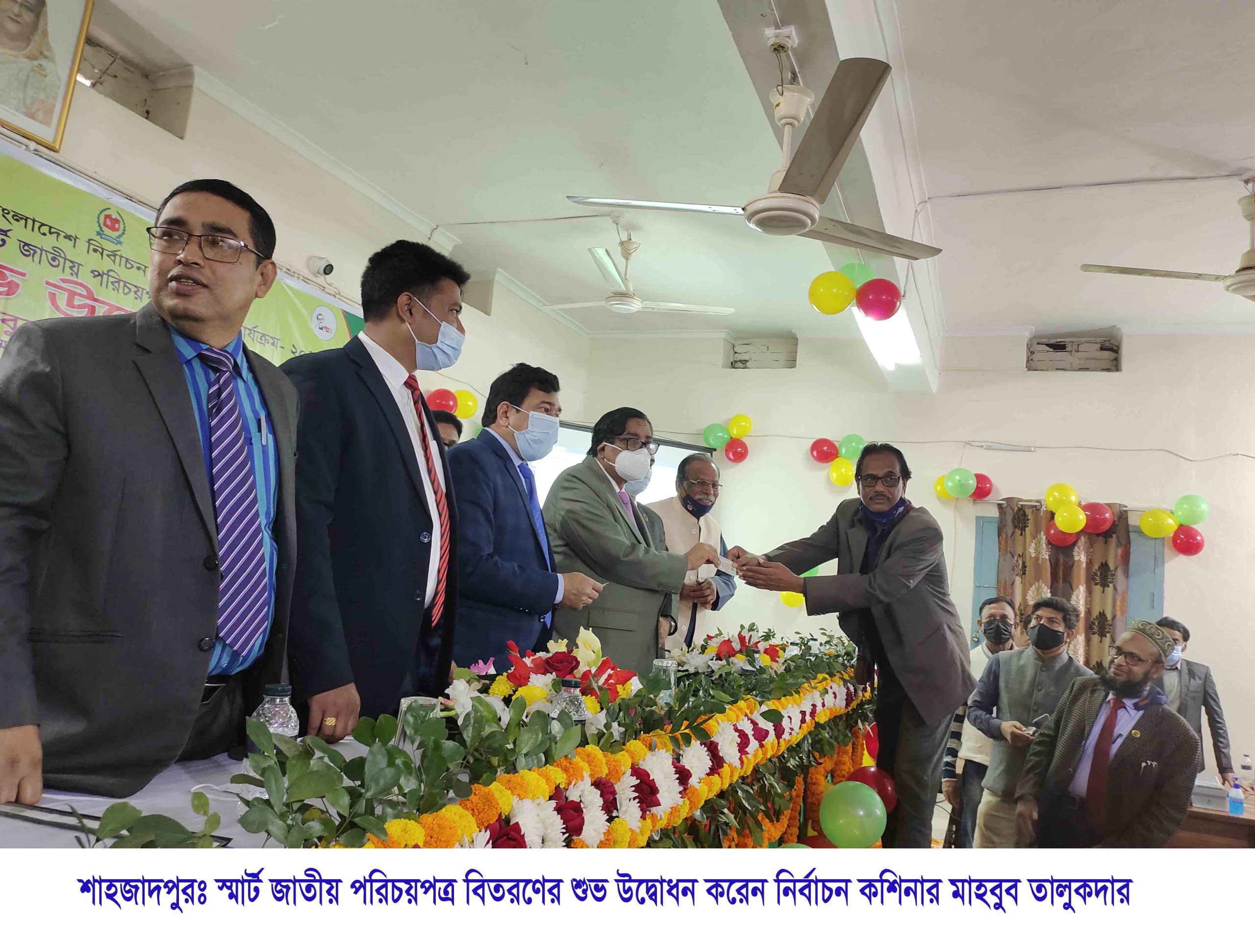 সাংবাদিকদের সাথে কথা বলার আগে শাহজাদপুর উপজেলা নির্বাচন অফিসের আয়োজনে অনুষ্ঠিত স্মার্ট জাতীয় পরিচয়পত্র বিতরণ অনুষ্ঠানে উপজেলা নির্বাহী অফিসার শাহ মোঃ শামসুজ্জোহার সভাপতিত্বে আলোচনা সভায় প্রধান অতিথি হিসাবে বক্তব্য রাখেন নির্বাচন কমিশনার মাহবুব তালুকদার। এছাড়া বিশেষ অতিথি হিসাবে বক্তব্য রাখেন উপজেলা পরিষদের চেয়ারম্যান প্রফেসর আজাদ রহমান, সিরাজগঞ্জ জেলা নির্বাচন অফিসার মোহাম্মদ শহিদুল ইসলাম, শাহজাদপুর পৌর মেয়র মনির আক্তার খান তরু লোদী। অন্যান্য অতিথিদের মধ্যে উপস্থিত ছিলেন রাজশাহী আঞ্চলিক নির্বাচন কর্মকর্তা মোঃ ফরিদুল ইসলাম, সিরাজগঞ্জ অতিরিক্তি জেলা প্রশাসক (রাজস্ব) মোঃ মোবারক হোসেন, শাহজাদপুর থানার ভারপ্রাপ্ত কর্মকর্তা (ওসি) শাহিদ মাহামুদ খান প্রমুখ। অনুষ্ঠান সঞ্চালনায় ছিলেন শাহজাদপুর উপজেলা নির্বাচন অফিসার মোঃ জাহাঙ্গীর হোসেন।