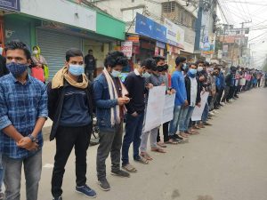 সিরাজগঞ্জে জাতীয় বিশ্ববিদ্যালয়ের সাধারণ শিক্ষার্থীদের উদ্যোগে জাতীয় বিশ্ববিদ্যালয়ের চলমান ৪র্থ বর্ষের ২০২০সালের আটকে থাকা পরিক্ষা এবং গত তিন বছর থেকে আটকে থাকা দ্বিতীয় এবং তৃতীয় পরিক্ষা স্বাস্থ্যবিধি মেনে নেওয়ার দাবিতে মানববন্ধন অনুষ্ঠিত হয়েছে।