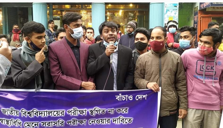 শিক্ষার্থীরা আরও বলেন, করোনার মধ্যে, দেশে বানিজ্য মেলা, হাটবাজার সব নিয়মিতভাবে চললেও শিক্ষা প্রতিষ্ঠান বন্ধ রাখার ঘোষনা করা হয়েছে। এতে করে জাতীয় বিশ্ববিদ্যালয়ের ছাত্রদের ছাত্র জীবনেই চাকুরিতে যাওয়ার বয়স শেষ হচ্ছে। এতে করে দেশে বেকারত্ব সমস্যা বৃদ্ধি পাচ্ছে। যুবকেরা হতাশায় মাদকসেবন ও আত্মহত্যার পথ বেছে নিচ্ছে। স্বাস্থ্যবিধি মেনে, নিরাপদ দূরত্বে আসন বিন্যাস করে বাকি পরীক্ষাগুলো অবশ্যই নেয়া সম্ভব।