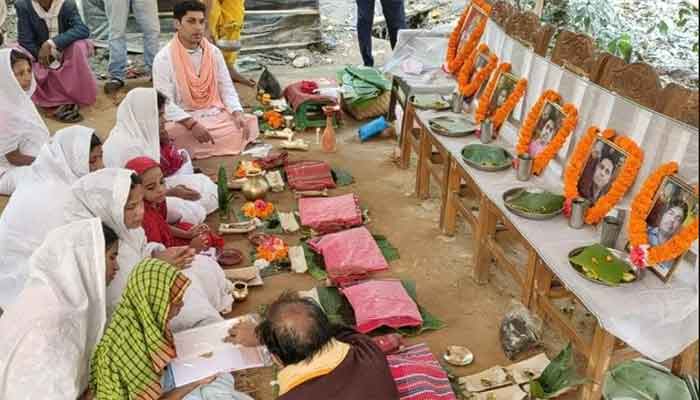 সকালে নিহত ৫ সহোদরের শ্রাদ্ধানুষ্ঠান চলাকালে দেখা যায়, ১০ দিনের ব্যবধানে স্বামী ও পাঁচ ছেলেকে হারিয়ে নির্বাক মানু বালা শীল। শোক সামলে তাকেই শ্রাদ্ধানুষ্ঠান দেখভাল করতে হয়। শ্রাদ্ধের অংশ হিসেবে নিহত পাঁচ ভাইয়ের ছবি সামনে রেখে পূজার আয়োজন করা হয়। সদ্য বিধবা মা মানু বালা শীল এবং তার নিহত সন্তান অনুপম শীলের স্ত্রী পপি বালা শীল, নিরুপম শীলের স্ত্রী গীতা শীল, স্মরণ শীলের স্ত্রী কৃসনা শীল, দীপক শীলের স্ত্রী পূজা শীল ও চম্পক শীলের স্ত্রী দেবী শীলের সঙ্গে শ্রাদ্ধানুষ্ঠানে অংশ নেন অনুপম শীলের শিশু সন্তান অর্কশীল (৭), স্মরণ শীলের শিশুপুত্র অভি শীল (৪) ও দীপক শীলের শিশুপুত্র আয়ুশ (৬)।