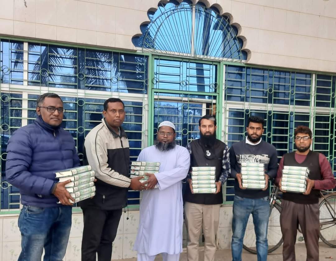 মঙ্গলবার (১৫ ফেব্র“য়ারি) বিকেলে সিরাজগঞ্জ শহরের রহমতগঞ্জ কবরস্থান হাফিজিয়া মাদ্রাসায় ৩০ পিচ, ছোনগাছা ইউনিয়নের ভাটপিয়ারি গ্রামের হাফিজিয়া কওমী মাদ্রাসা ১০ পিচ, স্টেডিয়াম রোডের তাহফিজুল কুরআন মডেল মাদ্ররাসায় ৫ পিচ মোট ৪৫টি কোরআন বিতরণ করা হয়।