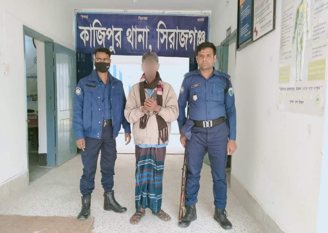 (২২ ফেব্র“য়ারী) দিবাগত রাতে গোপন সংবাদের ভিত্তিতে থানা অফিসার ইনচার্জ শ্যামল কুমার দত্তের নেতৃত্বে অভিযান চালিয়ে কাজিপুর সদর ইউনিয়নের খুদবান্দি ঘাট বাজার এলাকায় গ্রামের জনৈক সিদ্দিক হোসেনের এর মুদির দোকানের সামনে রাস্তা থেকে তাকে গাঁজাসহ গ্রেফতার করে।