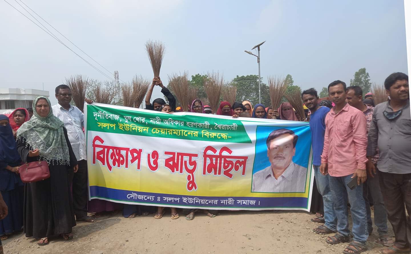 এসময় উল্লাপাড়া উপজেলা মহিলা স্বেচ্ছাসেবক লীগের সাবেক মহিলা সম্পাদিকা ও সলপ ইউনিয়নের ১,২,৩ নং ওয়ার্ডের সংরক্ষিত আসনের সাবেক মহিলা মেম্বর সুমাইয়া সরকারের নেতৃত্বে মানববন্ধন ও বিক্ষোভ মিছিলটি সলপ হাই স্কুল থেকে বের হয়ে চড়পাড়া মাঠে এসে শেষ হয়। মিছিলে সলপ ইউনিয়নের বিভিন্ন ওয়ার্ড থেকে প্রায় ৯শ মহিলা-পুরুষসহ এলাকাবাসী অংশগ্রহন করেন।