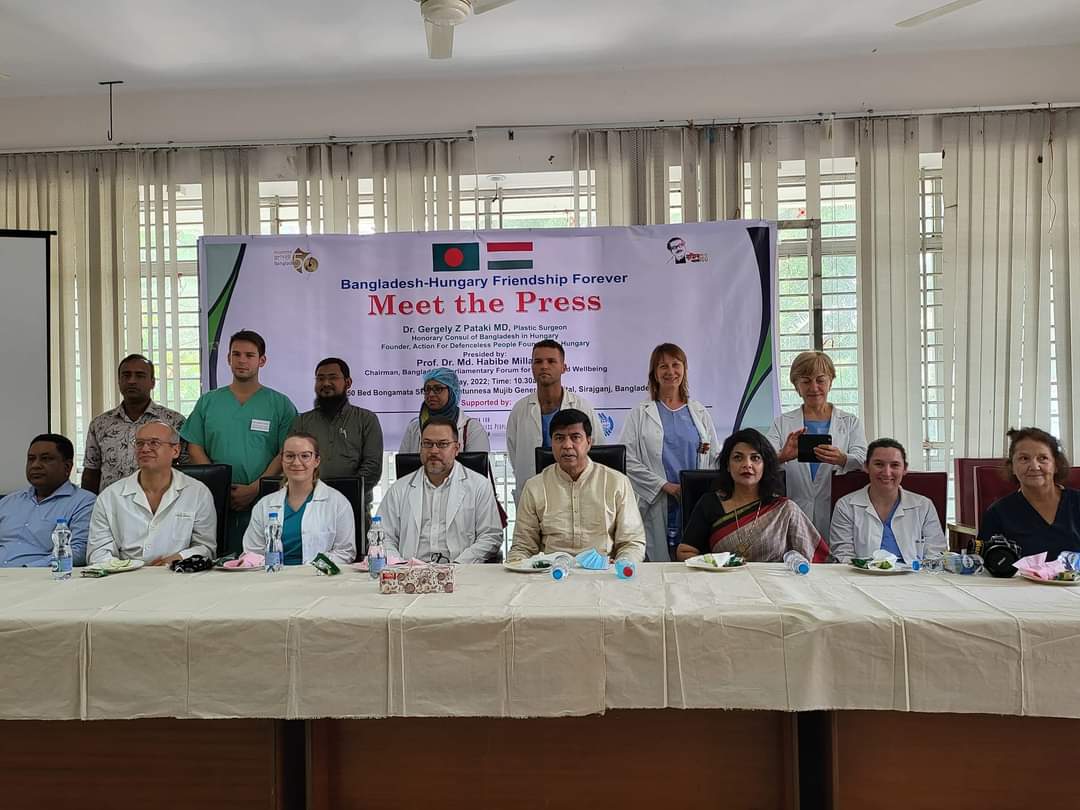 ৮মে রবিবার সিরাজগঞ্জ ২৫০ শয্যা বিশিষ্ট বঙ্গমাতা শেখ ফজিলাতুন্নেছা মুজিব জেনারেল হাসপাতালের সম্মেলন কক্ষে সংবাদ সম্মেলনের আয়োজক অধ্যাপক ডাক্তার হাবিবে মিল্লাত মুন্না বলেন,বিগত প্রায় ১দশক যাবৎ বাংলাদেশে জন্মগত বিকলাঙ্গ, দর্ঘটবায় বিকৃত, আগুনে পোড়া,এসিডে ঝলসানো বিশেষায়িত রোগিদের বিনামূল্যে চিকিৎসাসেবা দিয়ে যাচ্ছে হাঙ্গেরির অ্যাকশন ফর ডিফেন্সলেস পিপল ফাউন্ডেশন।এ পযন্ত প্রায় ৬০০ রোগীর সার্জারি সম্পন্ন করেছেন তারা।মাননীয় প্রধানমন্ত্রীর সহযোগিতায় বাংলাদেশের জোরা মাথার জমজ শিশু রাবেয়া রুকাইয়া পৃথকীকরণ সফলভাবে সম্পন্ন করেছে এ টিম।আমি আশাকরি ভবিষ্যতেও তাদের এ সেবা কার্যক্রম অব্যাহত থাকবে।