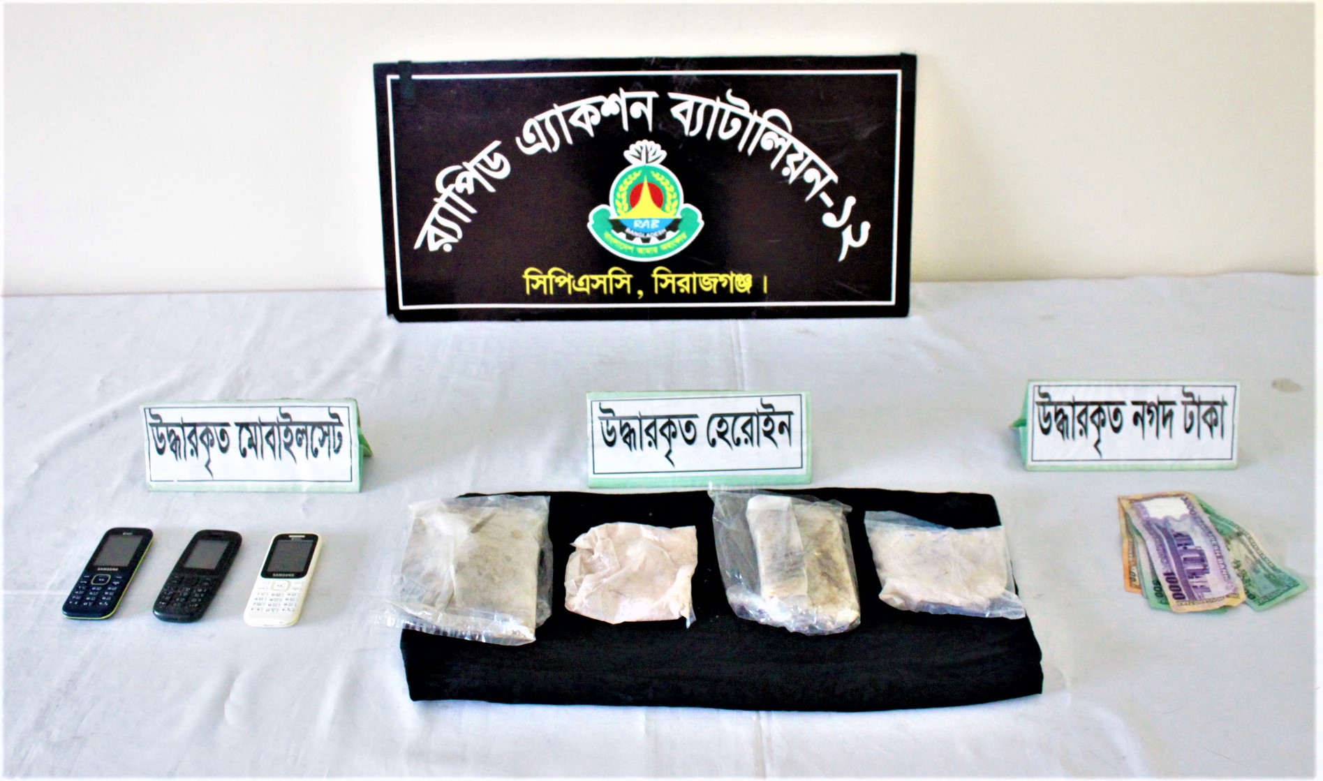 বিজ্ঞপ্তিতে জানানো হয়, গোপন সংবাদের ভিত্তিতে বৃহস্পতিবার (১৯ মে) গভীর রাতে উপজেলার তাড়াশ-বারুহাস সড়কে অভিযান চালিয়ে দুজন মাদক কারবারীকে আটক করা হয়েছে। এ সময় তাদের কাছ থেকে ৩২৫ গ্রাম হেরোইন ও মাদক ক্রয়-বিক্রয় কাজে ব্যবহৃত একটি মোটরসাইকেল জব্দ করা হয়। উদ্ধার হওয়া হেরোইনের আনুমানিক মূল্য প্রায় ৩২ লাখ টাকা।