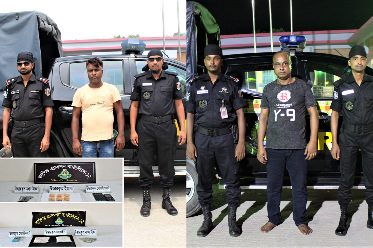 আটককৃতরা হলেন, রাজশাহী জেলার গোদাগাড়ী থানার পানিহার গ্রামের শ্রী গোবিন্দ সিং এর ছেলে শ্রী নিমাই সিং ও গাইবান্দা জেলার পলাশবাড়ী থানার নয়ানপুর গ্রামের মৃত নূর মোহাম্মদের ছেলে মো. মোস্তফা কামাল রুবেল।