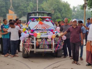 এসআই জিল্লুরকে সুসজ্জিত গাড়িতে বিদায় দিলেন সিরাজগঞ্জের পুলিশ সুপার