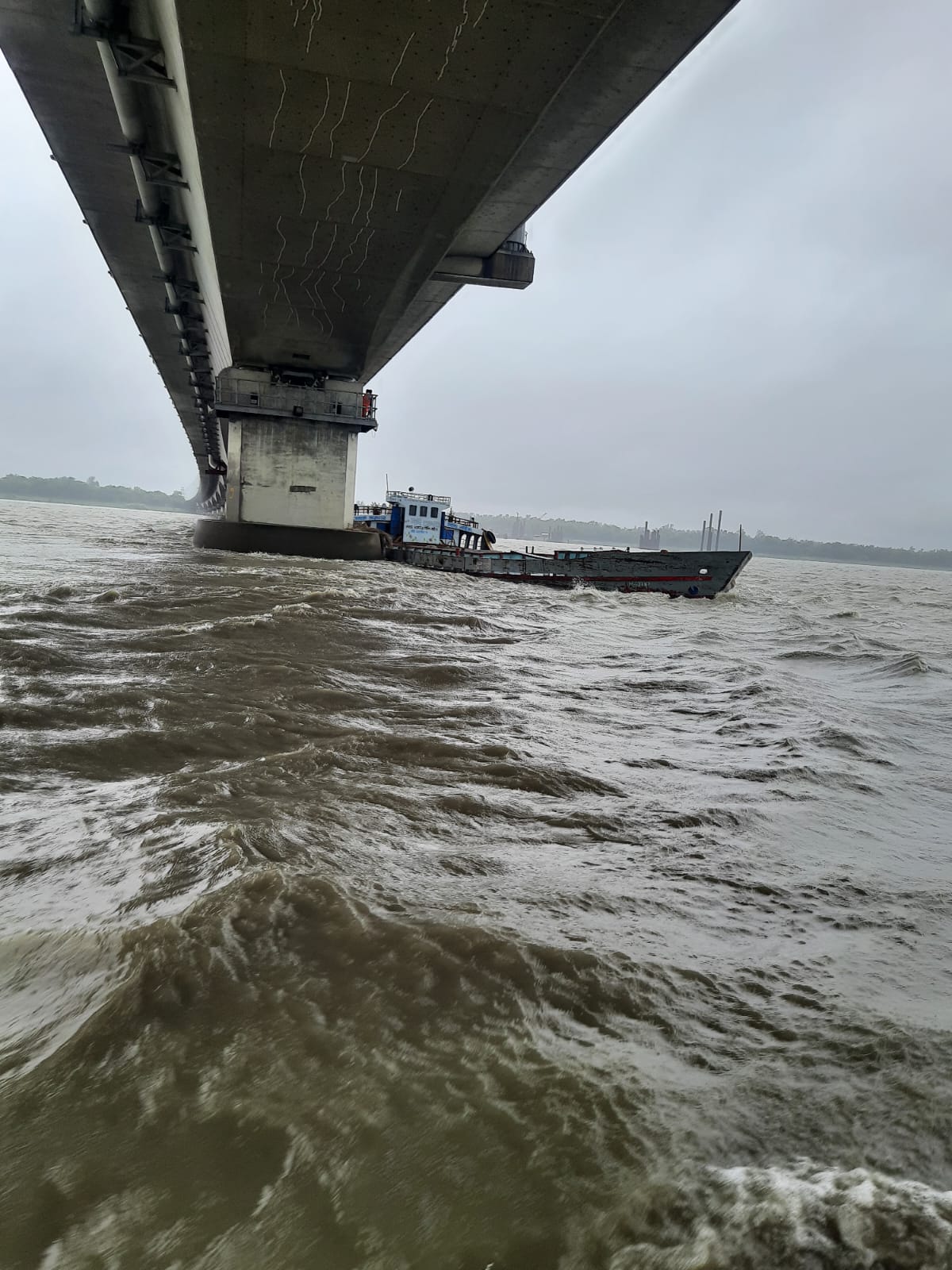 প্রত্যাক্ষদর্শি বঙ্গবন্ধু রেল সেতুর প্রকৌশলী ফারুক হোসেন বলেন, নদীতে অনেক পানি বাড়ছে নদীর প্রবল স্রোতর কারনে বাল্কহেডটি নিয়ন্ত্রণ হারিয়ে বঙ্গবন্ধু সেতু পশ্চিম পাড়ের ১০ নং পিলারের সাথে ধাক্কা লাগে এবং সেখানেই ডুবে যায়। তার কিছুক্ষন পর ৯ নং পিলারের সাথে আরেকটি বালু বোঝাই বাল্কহেড জোরে ধাক্কা দিয়ে আটকে যায়।