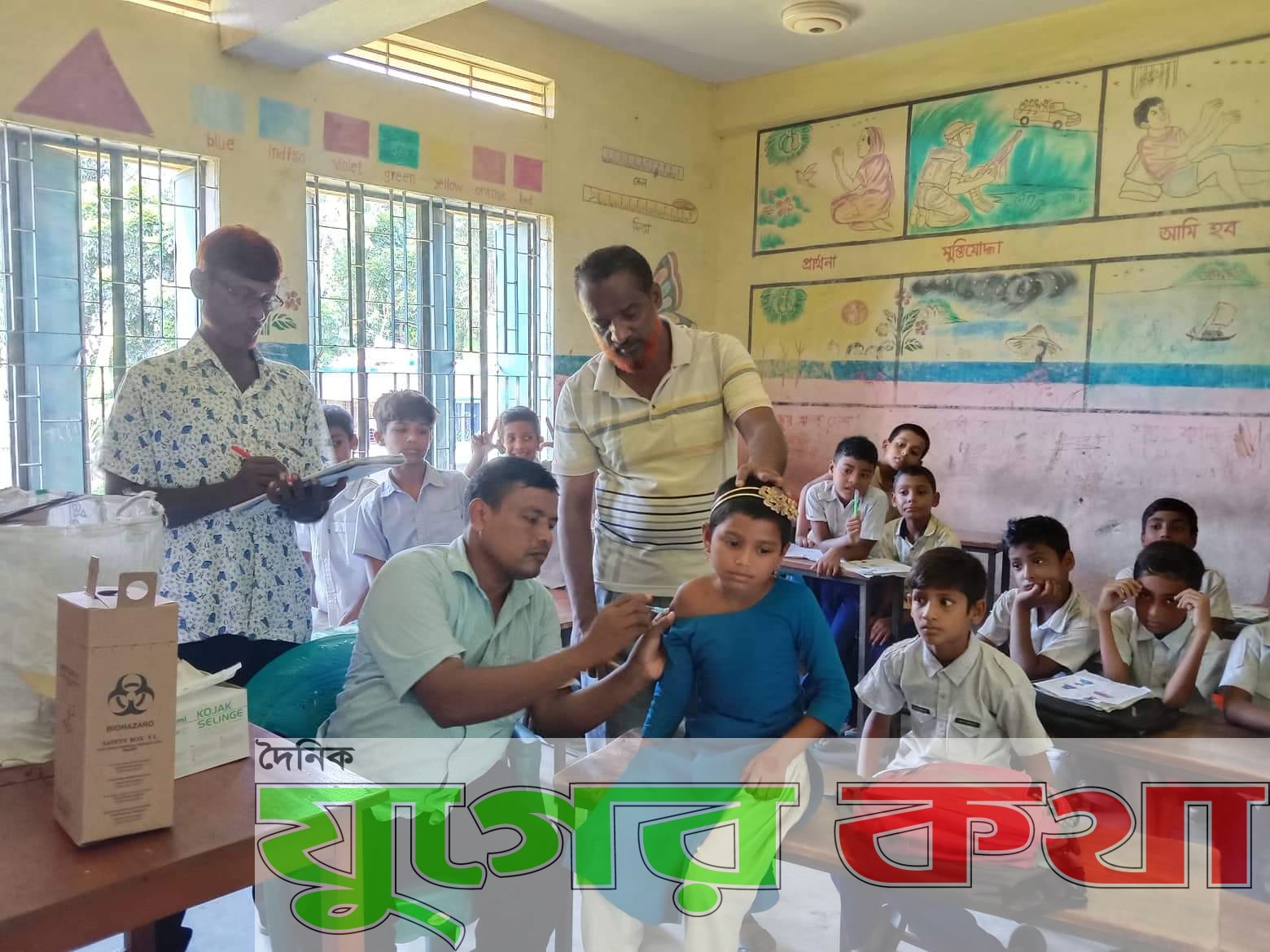 স্বাস্থ্যকর্মীরা সকাল ৯টায় প্রাথমিক বিদ্যালয়ে স্ব স্ব শ্রেনিকক্ষে ১ম ও ২য় শ্রেনির শিক্ষার্থীদের ভ্যাকসিন প্রদান করে। দুপুর ১২ টায় ৩য়, ৪র্থ ও ৫ শ্রেনির শিক্ষার্থীদের ভ্যাকসিন প্রদান করেন।