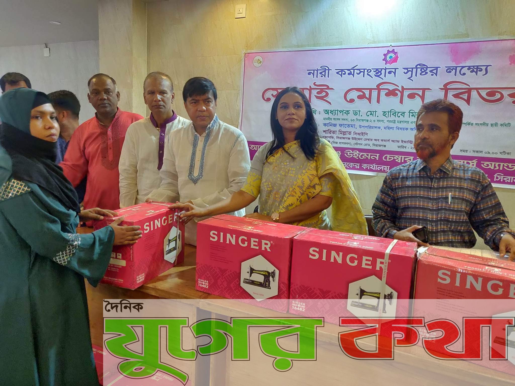 রবিবার সকালে সিরাজগঞ্জ উইমেন চেম্বার অব কমার্স অ্যান্ড ইন্ডাস্ট্রির আয়োজনে সিরাজগঞ্জ মহিলা বিষয়ক অধিদপ্তরের সহযোগিতায় সিরাজগঞ্জ সদর আসনের সংসদ সদস্য অধ্যাপক ডা. হাবিবে মিল্লাত মুন্না নারীদের মাঝে সেলাই মেশিন বিতরণ করা হয়।