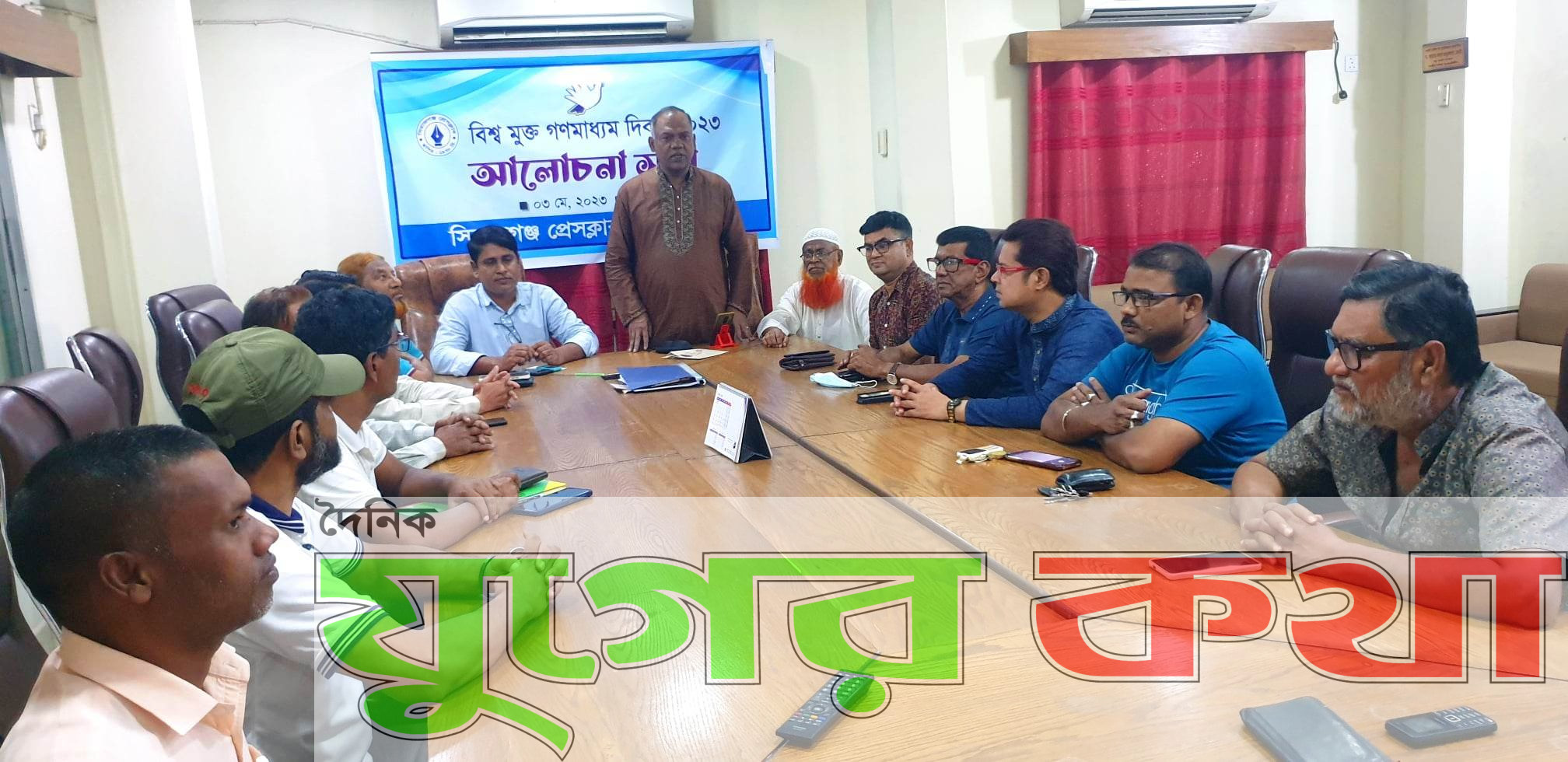 যুগের কথা প্রতিবেদক: যুগের কথা প্রতিবেদক : “মত প্রকাশের স্বাধীনতা সকল প্রকার মানবাধিকারের চালিকাশক্তি” এ প্রতিপাদ্যকে সামনে রেখে ঐতিহ্যবাহী সিরাজগঞ্জ প্রেসক্লাবের পালিত হয়েছে বিশ্ব মুক্ত গণমাধ্যম দিবস।