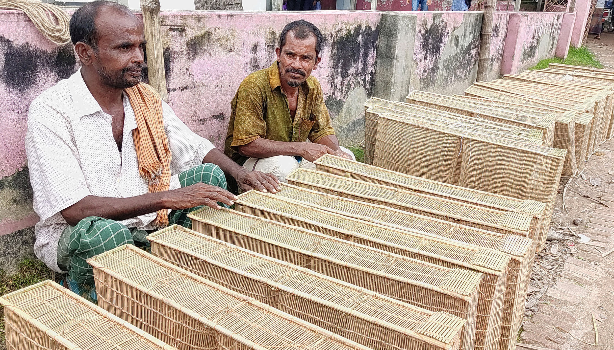 উল্লাপাড়া উপজেলার তেলিপাড়া গ্রামের শরীফ আহমেদ জানান, প্রথমে বাঁশ কাটা, শলাকা তৈরি। পরে সেগুলো শুকিয়ে নেয়া হয় হালকা রোদে। পচানো তালের ডাগুরের আঁশ দিয়ে খিল বান দেয়া হয়। এসব কাজে গৃহবধূ থেকে শুরু করে পরিবারের অন্যান্য সদস্যরাও সহায়তা করে থাকে। এই ফাঁদ বোনার কাজে সকাল-সন্ধ্যা ব্যস্ত সময় পাড় করছেন তারা। এ ফাঁদ দিয়ে চিংড়ি, পুঁটি, খৈলশা, গুচি, ট্যাংরা মাছ শিকার করা হয়। এতে খাবারের জন্য বাজার থেকে মাছ কিনতে হয় না অনেকেরই।