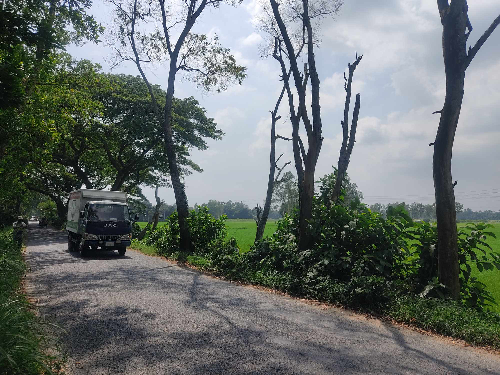 বুধবার (১৩ সেপ্টম্বর) বিকেলে সরেজমিনে দেখা যায়, এই আঞ্চলিক সড়কের দুপাশে শত শত গাছ রয়েছে। এর মধ্যে প্রায় ৪০টি মতো মরা গাছ আছে। এই সড়ক দিয়ে সিএনজিচালিত অটোরিকশা, ব্যাটারিচালিত ভ্যান, ছোট-বড় ট্রাক, বাস, মোটরসাইকেল চলাচল করছে। এ ছাড়া এই সড়ক দিয়ে প্রতিদিন হাজারো মানুষ বিভিন্ন জায়গায় যাওয়া-আসা করেন। এদের মধ্যে আছে সরকারি চাকরি জীবি, স্কুল, কলেজের অনেক শিক্ষার্থীও।
