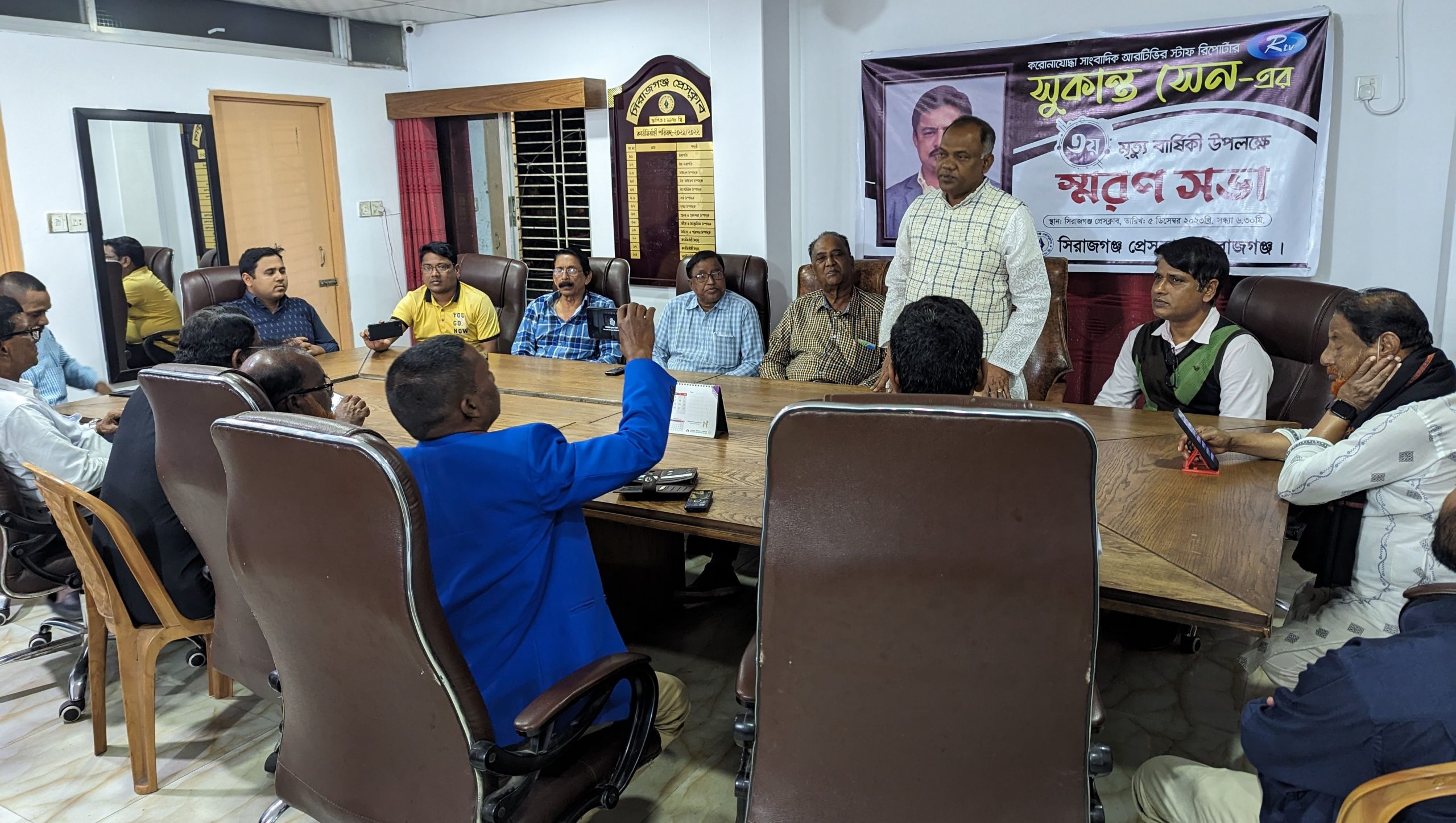 সিরাজগঞ্জ প্রেসক্লাবের আহ্বায়ক সিনিয়র সাংবাদিক আব্দুল কুদ্দুস এর সভাপতিত্বে উপস্থিত ছিলেন সিরাজগঞ্জ প্রেসক্লাবের সাবেক সভাপতি হেলাল উদ্দিন, সাবেক সহ-সভাপতি আলোকিত বাংলাদেশ এর স্টাফ রিপোর্টার এসএম তফিজ উদ্দিন, সাবেক সহ সভাপতি কালের কন্ঠ জেলা প্রতিনিধি ইসরাইল হোসেন বাবু, প্রতিদিনের সংবাদ এর জেলা প্রতিনিধি বীর মুক্তিযোদ্ধা গাজী এসএইচ ফিরোজী, বীর মুক্তিযোদ্ধা মান্না রায়হান, কালবেলা ও বাংলা নিউজের জেলা প্রতিনিধি স্বপন চন্দ্র দাস, আজকালে খবর জেলা প্রতিনিধি জহুরুল ইসলাম, যুগের কথা স্টাফ রিপোর্টার আহসান হাবিব মুন্না, সোনালী সংবাদ এর জেলা প্রতিনিধি রফিকুল ইসলাম, দি ইনডিপেন্ডেন্ট পত্রিকার জেলা প্রতিনিধি নজরুল ইসলাম, ভোরের দর্পন এর জেলা প্রতিনিধি এস এম আল আমিন, বিজয় টিভির জেলা প্রতিনিধি রোমান আহমেদ, আরটিভির জেলা প্রতিনিধি সাজিরুল ইসলাম সঞ্চয়, মানবজমিন এর জেলা প্রতিনিধি সুজন সরকার, দেশ টেলিভিশন এর জেলা প্রতিনিধি সায়েম উদ্দিন, গ্লোবাল টেলিভিশন জেলা প্রতিনিধি আশরাফুল ইসলাম।