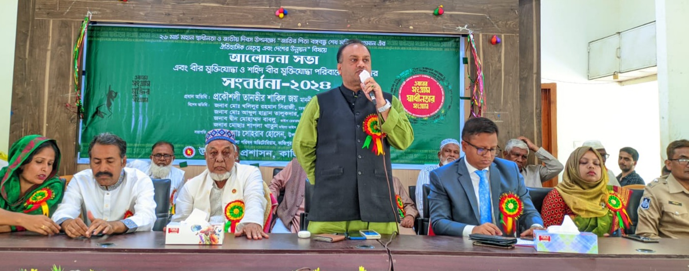 কাজিপুরে মহান স্বাধীনতা ও জাতীয় দিবস উপলক্ষ্যে “জাতির পিতা বঙ্গবন্ধু শেখ মুজিবুর রহমান এঁর ঐতিহাসিক নেতৃত্ব এবং দেশের উন্নয়ন” বিষয়ে আলোচনা সভা এবং বীর মুক্তিযোদ্ধা ও শহীদ বীর মুক্তিযোদ্ধা পরিবারের সদস্যদের সংবর্ধনা ২০২৪ প্রদান করেছে কাজিপুর উপজেলা প্রশাসন।