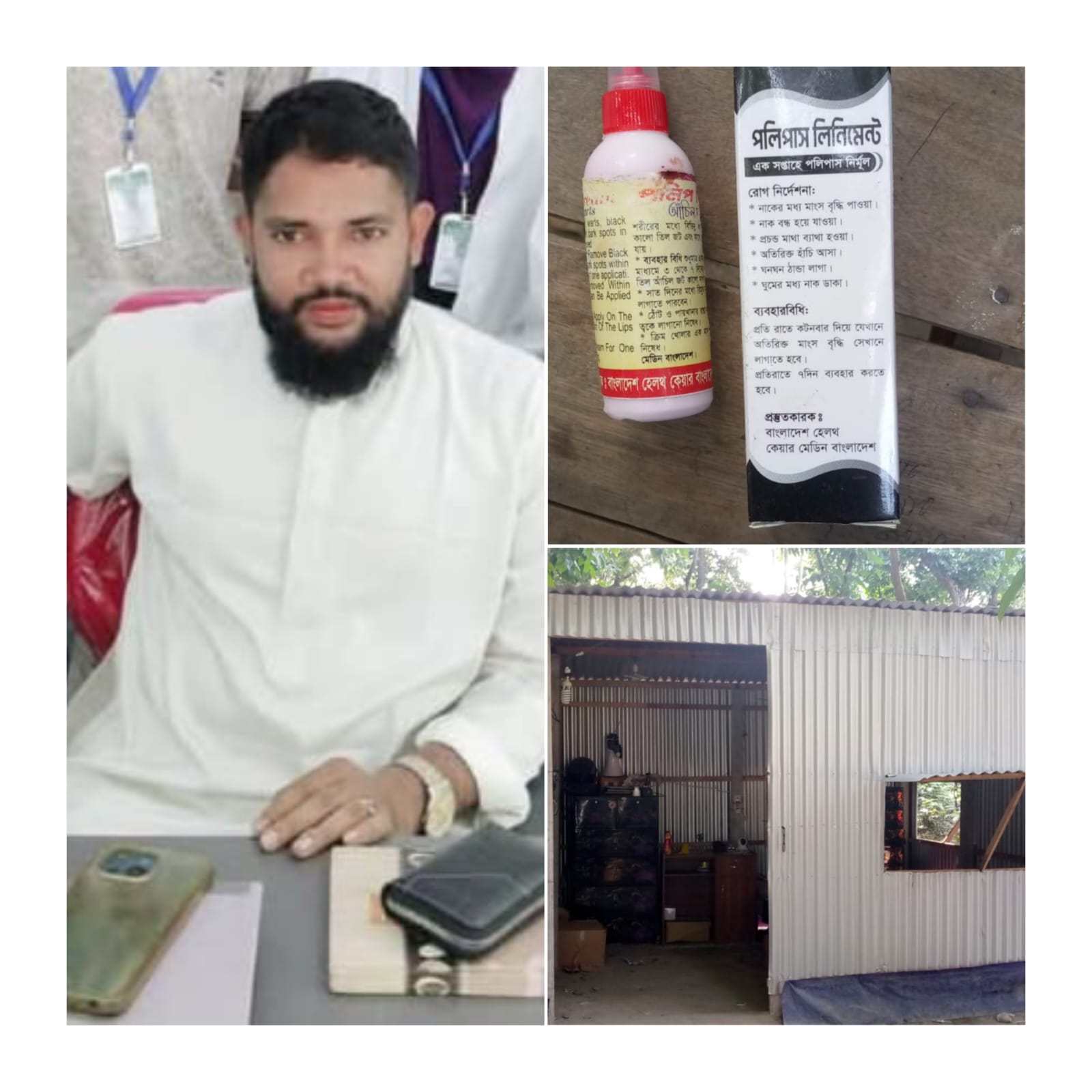 তথ্য অনুসন্ধানে জানাজায়, সলঙ্গা থানার পুরাতন বেড়া এলাকায় বদিউজ্জামান এর ছেলে মহিবুল্লাহ্ সবুজ ৫ম শ্রেনী পর্যন্ত লেখা পড়া করেই কেমিস্ট বনে গিয়ে নিজ বাড়িতেই ল্যাব ছাড়াই তৈরি করছেন তিল,আচিল, নাকের পলিপাসের ঔষধ। বাংলাদেশ হেলথ কেয়ার ফেজবুক পেজে অনলাইনে চটকদার বিজ্ঞাপন দিয়ে দীর্ঘদিন ধরে মানুষের সাথে প্রতারণা করে আসছেন।