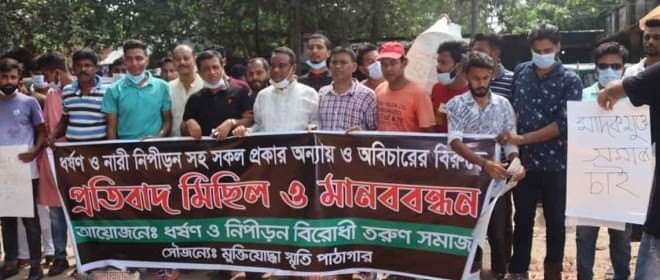মানিকগঞ্জে ধর্ষণ ও নারী নিপীড়নের বিরুদ্ধে প্রতিবাদ মিছিল ও মানব…