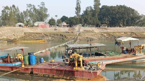 কামারখন্দে ফুলজোড় নদীতে বাংলা ড্রেজার দিয়ে অবৈধ বালু উত্তোলন ড্রেজার…