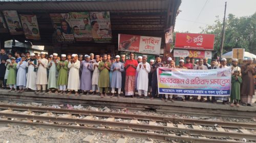ফিলিস্তিনের ওপর ইসরাইলি হত্যাযজ্ঞের প্রতিবাদে কামারখন্দে মানববন্ধন