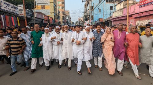 ফিলিস্তিনিদের উপর বর্বরোচিত হামলার প্রতিবাদে লাহিড়ী মোহনপুরে মানববন্ধন ও প্রতিবাদ…