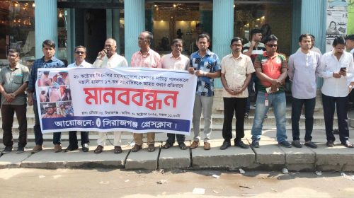 বিএনপির মহাসমাবেশে সাংবাদিকদের উপর হামলার প্রতিবাদে সিরাজগঞ্জে মানববন্ধন