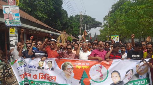 খালেদার মুক্তি ও উন্নত চিকিৎসার দাবীতে সিরাজগঞ্জে বিএনপির বিক্ষোভ মিছিল