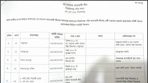 ক্যালেন্ডার ভিত্তিক রাজনৈতিক কর্মসূচি সিরাজগঞ্জ পৌর আওয়ামীলীগের