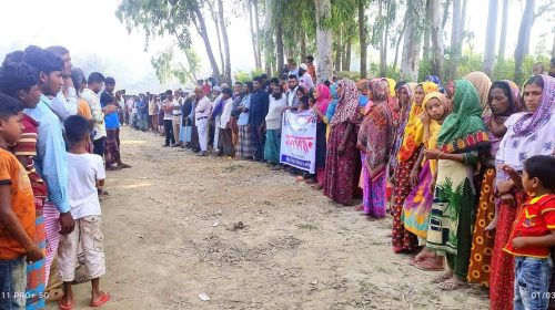 উল্লাপাড়ায় কৃষক হত্যার প্রতিবাদে সন্ত্রাসীদের গ্রেফতারের দাবিতে মানববন্ধন