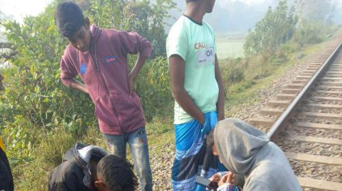 কামারখন্দে রেল লাইনে ফাটল লাল কাপর উড়িয়ে ট্রেন থামালো স্থানীয়রা