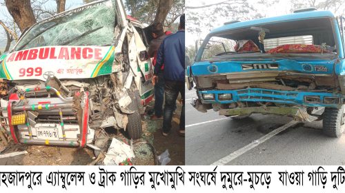 শাহজাদপুর প্রতিনিধি : শাহজাদপুর উপজেলার পৌর সদরের নগরবাড়ী-বগুড়া মহাসড়কের পাড়কোলা বাজারের পাশে এ্যাম্বুলেন্স ও ট্রাকের মুখোমুখি সংঘর্ষ আহত ২। গতকাল শনিবার শাহজাদপুর হতে ছেড়ে আসা একটি ট্রাক নম্বর সিরাজগঞ্জ-ড ১১-০৪২২…