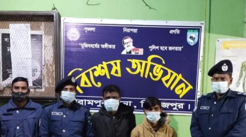 বিরামপুর (দিনাজপুর) প্রতিনিধি : দিনাজপুরের বিরামপুর থানা পুলিশের বিশেষ অভিযানে আন্তঃজেলা বৈদ্যুতিক মিটার চোর চক্রের ২ জনকে আটক করেছে বিরামপুর থানা পুলিশ। বিরামপুর থানার ভারপ্রাপ্ত কর্মকর্তা (ওসি) সুমন কুমার মহন্ত…
